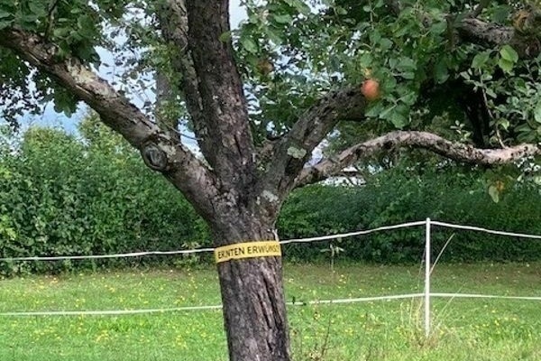 Wenn auch Sie eine Streuobstwiese bewirtschaften, aber während der Obstsaison nicht alles selbst ernten können, dann markieren auch sie ihre Bäume mit einem gelben Band. So wissen unsere Bürgerinnen und Bürger jederzeit, wo sie ohne Rücksprache ernten dürfen. Gemeinsam sorgen wir dafür, dass weniger Obst ungenutzt auf der Wiese lieben bleibt und verrottet.