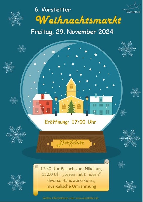 um die winterlichen Tage in unserem schönen Dorf noch festlicher zu gestalten, laden wir Sie herzlich zu unserem Vörstetter Weihnachtsmarkt ein.