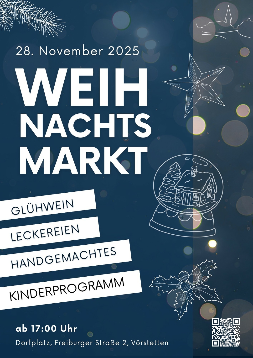 um die winterlichen Tage in unserem schönen Dorf noch festlicher zu gestalten, laden wir Sie herzlich zu unserem Vörstetter Weihnachtsmarkt ein.